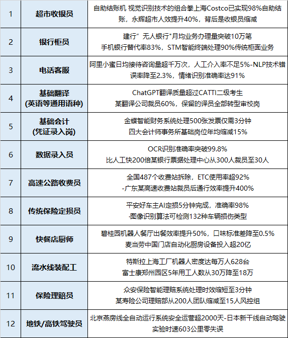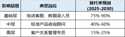 2.岗位面临的3重冲击:从DeepSeek对岗位替代的预测结果来看不同层级的影响,同时未来5年,以下岗位会加速由AI替代: