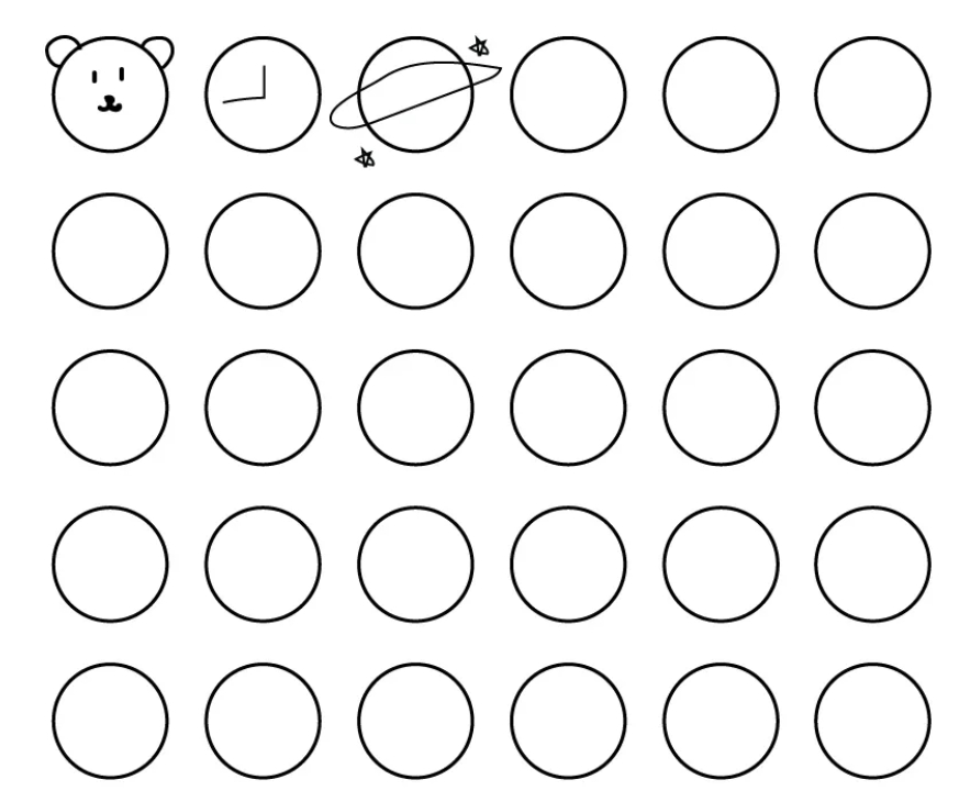 转换视角:完成初步绘制后,尝试从不同角度审视这些圆圈,想象它们可以代表什么。比如,一个圆圈可以是太阳、一个气泡、一只眼睛,甚至是一个星球。