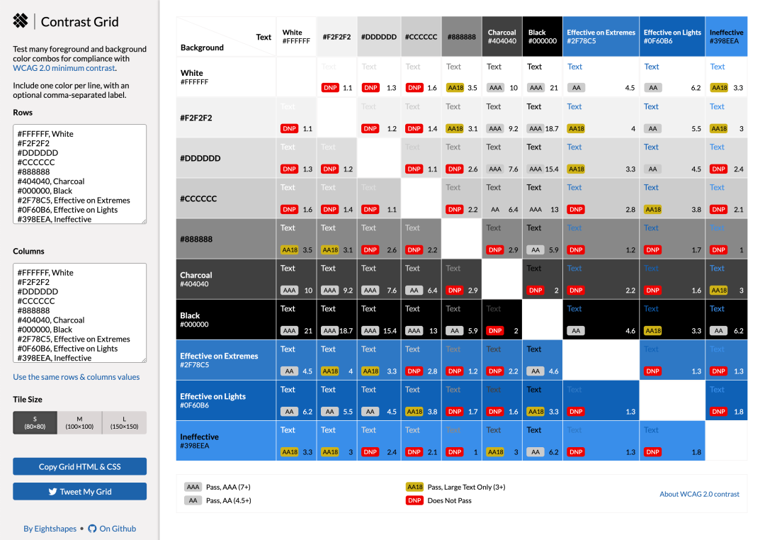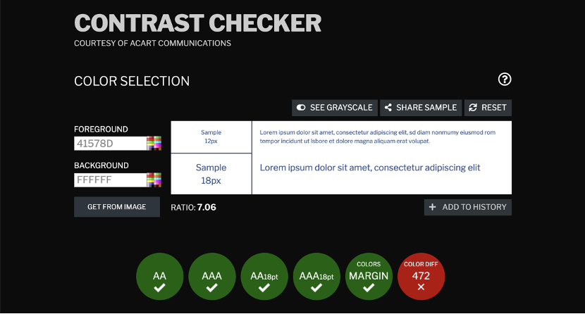 那该如何验证我们的颜色符合上述标准呢?网络上有诸多工具可以帮助我们轻松查看前景色和背景色的对比度,以下是笔者此次筛选的3个个人认为最佳的工具站点: