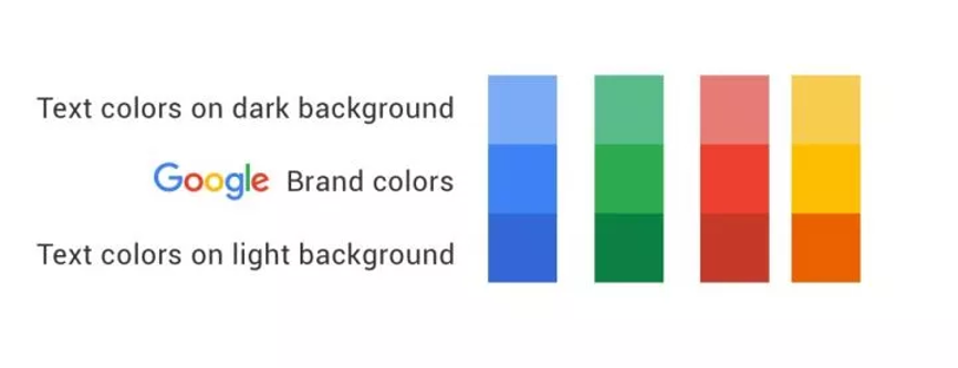 另外实验发现,Google 在深浅背景上使用的颜色,都不是直接将 brand color 拿过来就用,而是根据不同背景调整后的颜色。