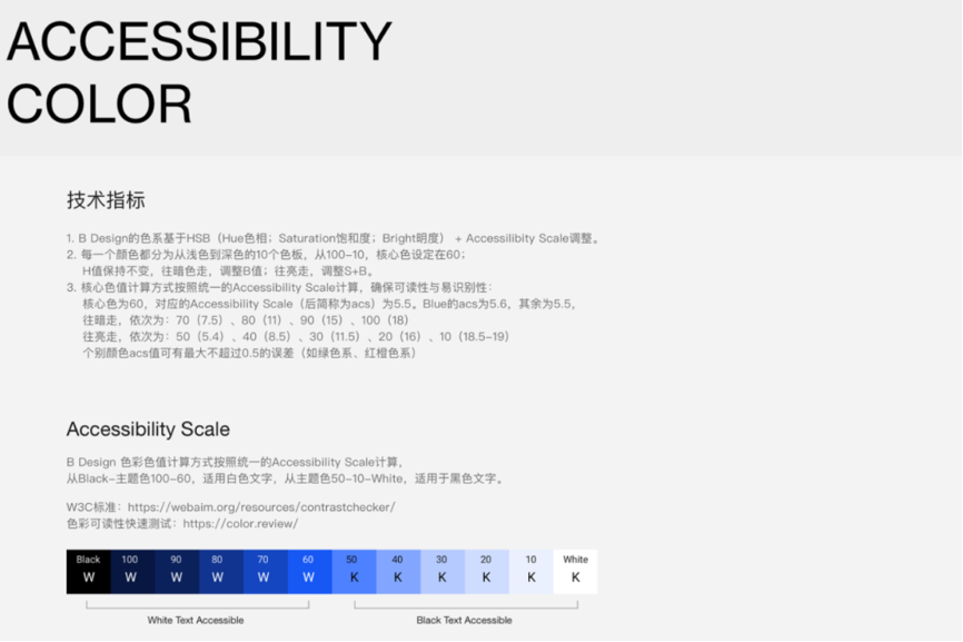 阿里巴巴在前不久发布的B-Design中的无障碍色acs指标和WCAG本质上也是一样。