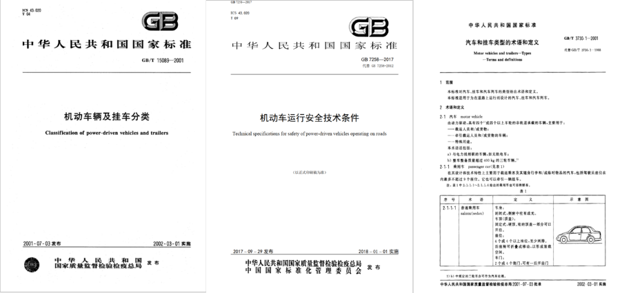 以上是GA标准中关于《道路交通管理机动车类型》的部分举例,涉及到机动车整车的分类、要求标准及补充标准还有很多,例如《GBT3730.1-2001汽车和挂车类型的术语和定义》、《GB7258-2017机动车运行安全技术条件》、《机动车运行安全技术条件》等等。
