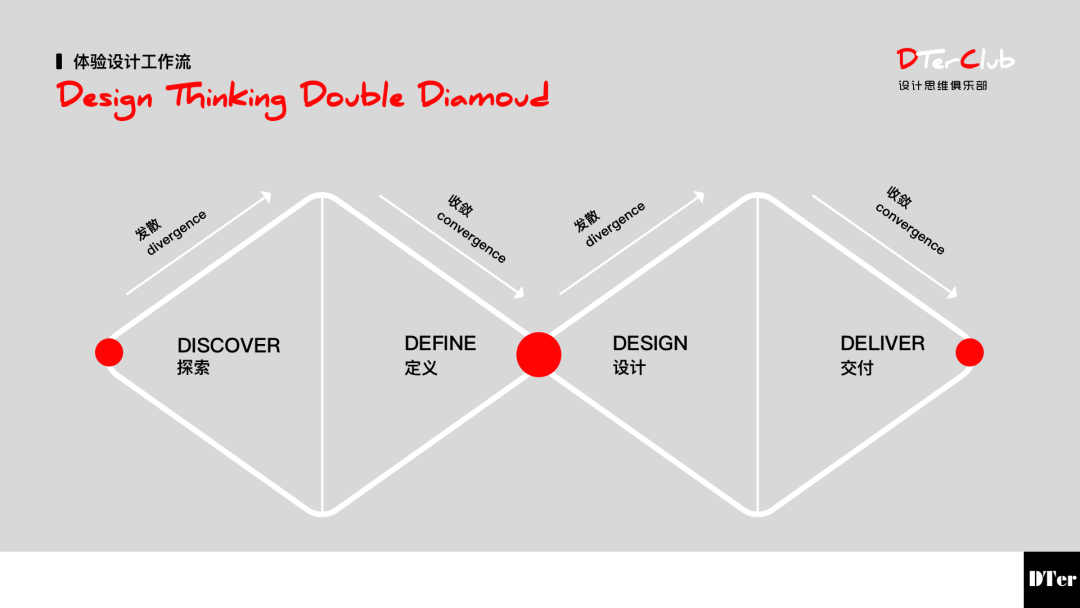 体验设计过程由设计思维,精益和敏捷方法构成的,设计思维用于探索问题定义产品设计,精益与敏捷则更好的执行与协同,高效,快速。以人为本,非线形且反复,快速验证与测试。