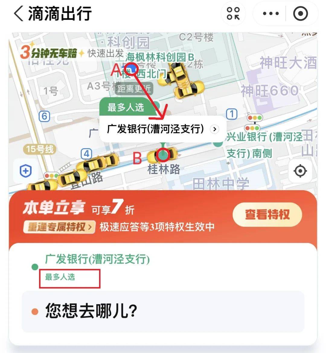 再来看打车软件,当你打车的时候可能你还坐在办公室,而你公司所在的园区有多个大门入口。该软件自动定位你后,会帮你把出发地的定位自动移到“最多人选”的上车点。省去了出发地调整的步骤,也避免了司机找错门口的麻烦。