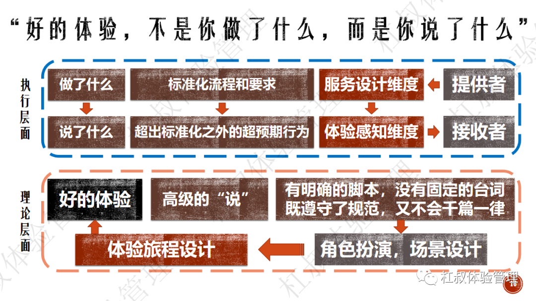 但不要对这句话产生误解,并不是说为顾客所做是无用的,而是说“做了什么”并不是营造好的体验氛围的根本原因,重要的原因还是因为“你说了什么”。