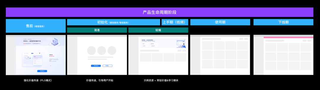 在随着分析的深入,我们将数字资产管理的过程划分为以下几个关键阶段:售前阶段、初始化阶段、用户开始配置和使用产品、学习阶段、、深入使用阶段、下线阶段 针对这些不同的阶段,我们有一些认为有效的设计策略,能够帮助用户更好地过渡到下一个阶段,从而提升用户留存率和服务的整体价值。