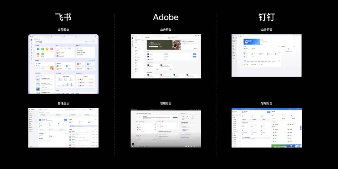 在当前的企业级SaaS产品设计中,如Adobe、飞书、钉钉等,我们观察到一种趋势:采用“业务前台”和“管理后台”的双工作台信息架构。这种架构设计明确区分了两种广泛认知的角色: