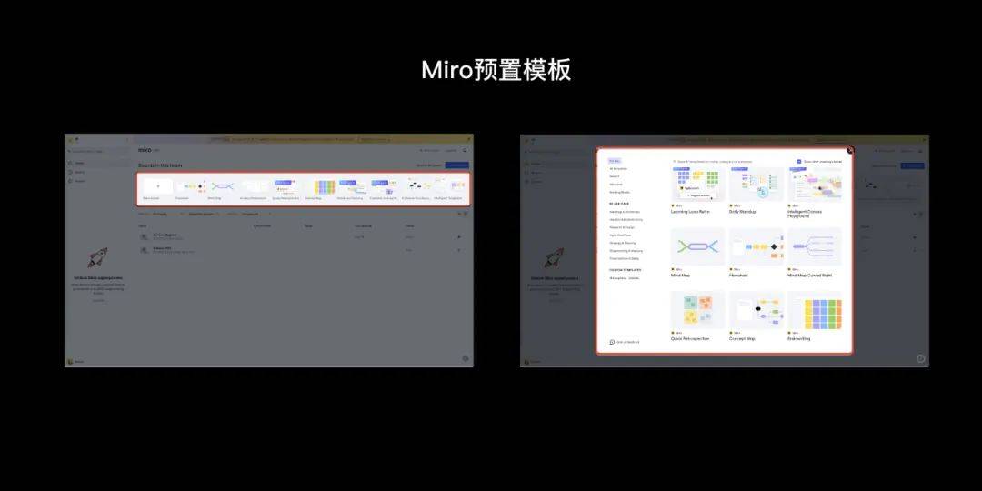 预置案例的成功关键在于选择与目标用户群体密切相关的典型业务场景。例如,Miro(一个在线协作白板工具)就非常成功地实施了这一策略,它预置了专门针对IT、互联网、金融领域的研究和分析模板。